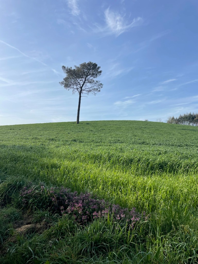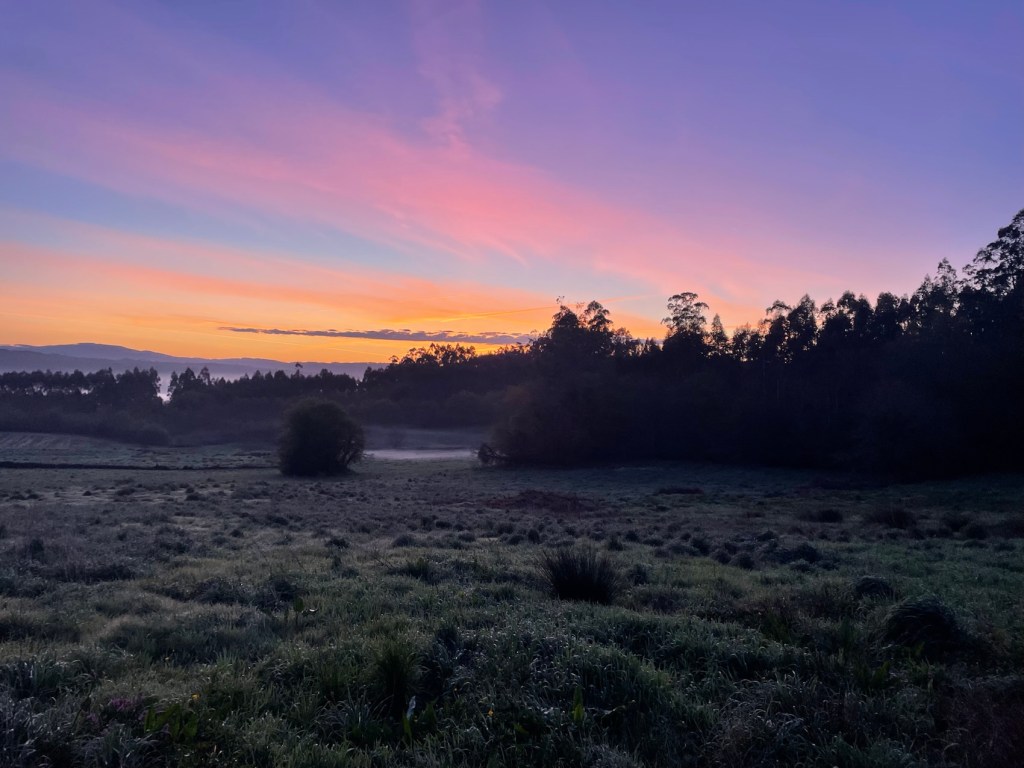 Hiking 20 beautiful miles from Negreira to Olveira, through dairy farms, fields of grasses and legumes, and misty countryside, my journey today was filled with interesting encounters. During a morning rest, I stopped for coffee, freshly-squeezed orange juice, and a slice of traditional Santiago torta. Noticing a couple nearby, I took a Camino pilgrim’s liberty and asked to join them—the wife from Peru, the husband from Holland. They welcomed me warmly, and we spent a delightful half-hour discussing everything from the ancient wonders of Machu Picchu to the vibrant tulip fields of the Netherlands.